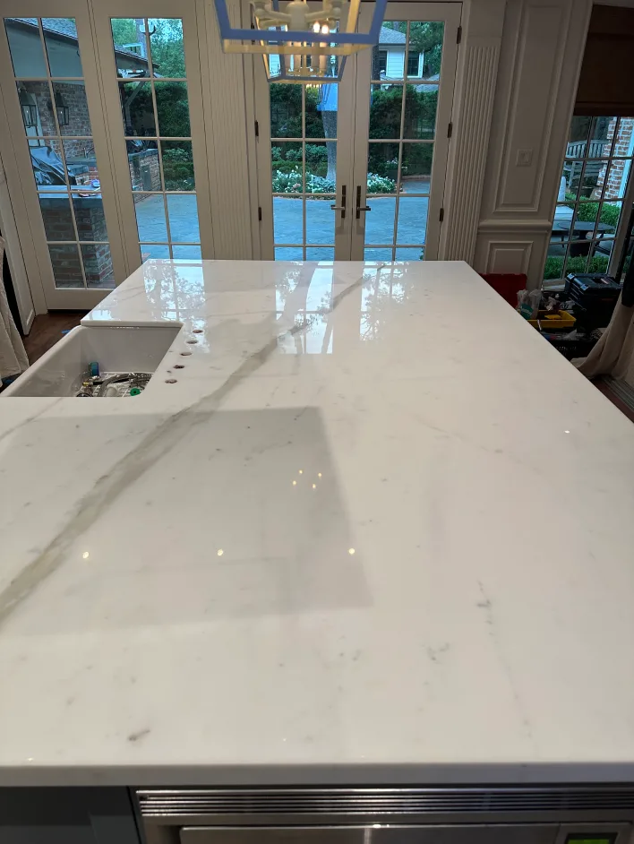 - Finishing Touches: After the sealer has cured, we sand the surface again to match your desired finish—whether you prefer a polished, honed, or matte look. The end result is a beautiful, durable surface that will never etch or stain.